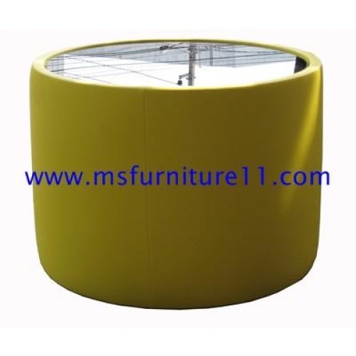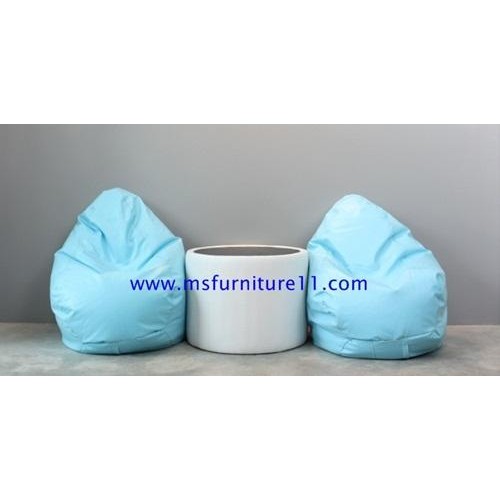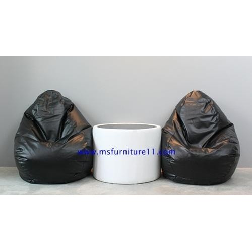 ชุดโต๊ะกลางกลม หุ้มหนังสีขาว/ดำ พร้อมเก้าอี้บีนแบ็ก 2 ตัว